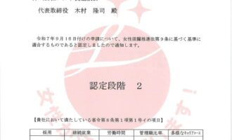 女性活躍推進法に基づく「えるぼし(2つ星)」に認定されました。